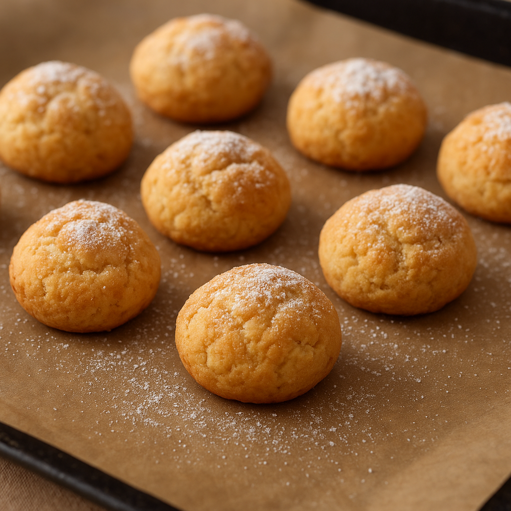 Die Quarkbällchen etwa 20–25 Minuten backen, bis sie goldbraun sind. Danach kurz abkühlen lassen. - Finish: