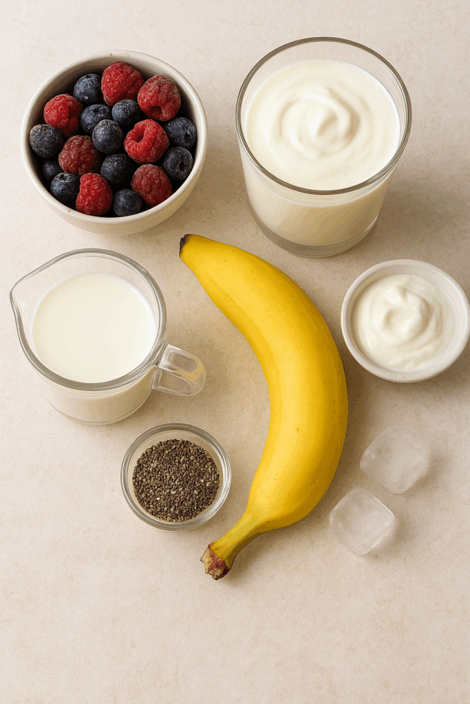 - 150 g gefrorene Beerenmischung (z. B. Himbeeren, Blaubeeren, Erdbeeren)