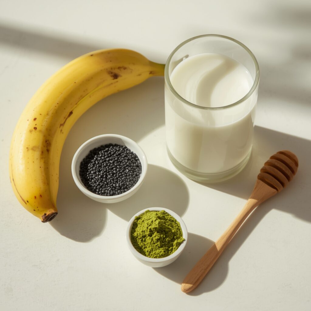 Viele Menschen greifen morgens zu Kaffee oder süßen Frühstücksprodukten, um in Schwung zu kommen. Doch es geht auch anders – und viel gesünder! Dieser grüne Vital-Smoothie mit Banane, Chlorella und schwarzem Sesam liefert dir natürliche Energie, wertvolle Mikronährstoffe und eine ordentliche Portion Pflanzenpower. Perfekt für alle, die sich bewusst ernähren, ihr Immunsystem stärken oder ihren Alltag ein kleines bisschen fitter gestalten möchten.